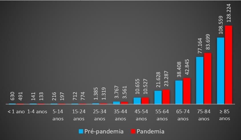 Este grupo etário esteve em contínuo crescimento nas últimas décadas, fruto das melhorias nos cuidados médicos, tendo duplicado mesmo o seu número entre 2004 (quando então viviam apenas cerca de 16 mil pessoas com mais de 85 anos) e 2020. Esse crescimento será quebrado, certamente agora, com o excesso de óbitos em 2021 e 2022.