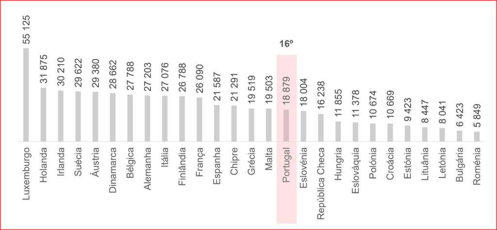 Nada disso. Portugal encontrava-se na 16º posição em 2000 para os 27 países que hoje fazem parte da União Europeia (UE). Atrás de si, vários países que tinham vivido o horror comunista, como a Roménia, a Bulgária, a Polónia ou os países bálticos.