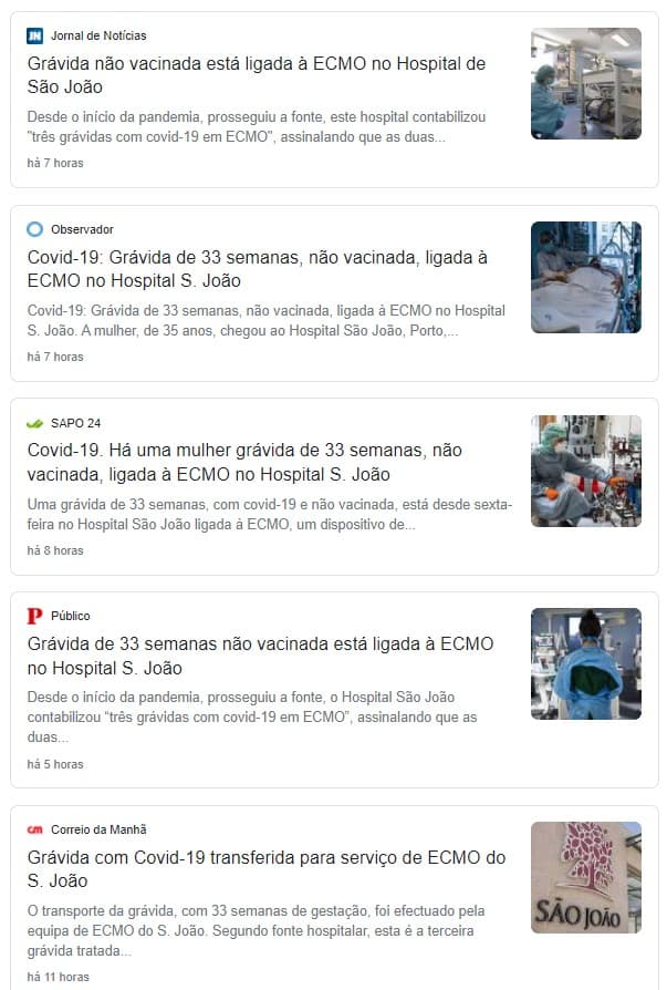 Ora, este fim-de-semana, foi divulgado exactamente por uma fonte do Hospital de São João – a unidade de saúde do mui ético doutor Filipe Almeida – que ali estava internada uma mulher de 35 anos, grávida de 33 semanas, e ligada a ECMO (extra corporeal membrane oxygenation), proveniente do Centro Hospitalar Tâmega e Sousa, mais precisamente do Hospital de Penafiel. O take da Lusa complementava, segundo a mesma fonte do Hospital de São João, que a mulher estava “estável” e que o feto “se encontra bem”.