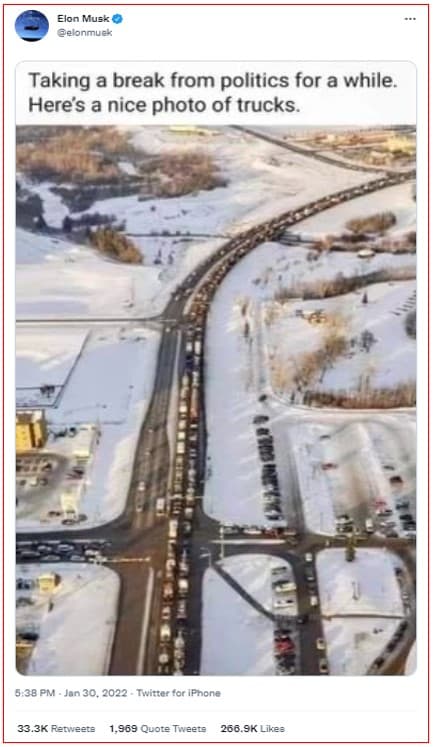 Apesar de os protestos serem dinamizados por camionistas, os apoios populares têm sido crescentes, e mesmo o dono da Tesla, Elon Musk – nascido na África do Sul, mas também canadiano de nacionalidade, por via materna – já deu o seu apoio explícito. Ainda ontem, através do Twitter, publicou uma foto irónica sobre o Freedom Convoy.