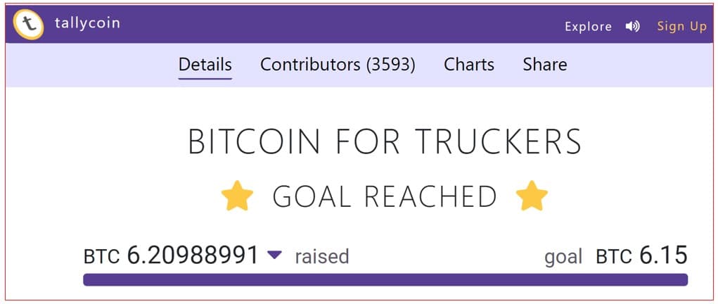 Antes do bloqueio da GoFundMe, esta campanha promovida por alguém sob anonimato (usando o pseudónimo Honkhonk Hodl), tinha apenas recebido um pouco menos de 10 mil euros em bitcoins; neste momento, já foram transferidas criptomoedas no valor de 226 mil euros, superando os objectivos iniciais. Ou seja, cresceu quase 23 vezes em menos de dois dias.