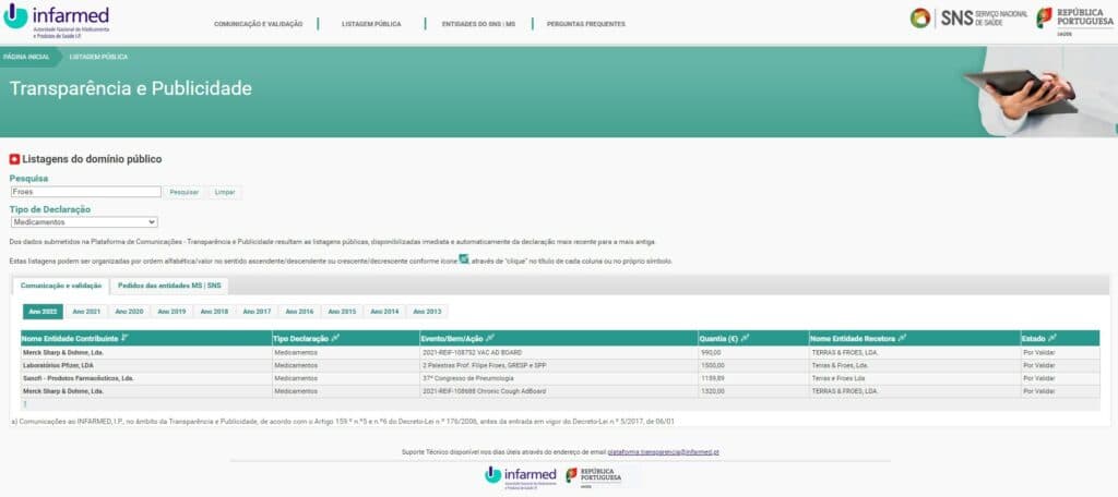 Seria expectável que a base de dados do Infarmed exigisse que o registo inicial da pessoa ou entidade beneficiada incluísse, por exemplo, o número de identificação fiscal, e que não permitisse outras denominações além da oficial. Como tal não sucede, multiplicam-se os registos distintos – alguns até por força de “gralhas” –, impedindo ou dificultando assim uma aferição rápida dos montantes e da quantidade de eventos com patrocínio que uma determinada sociedade obteve.
