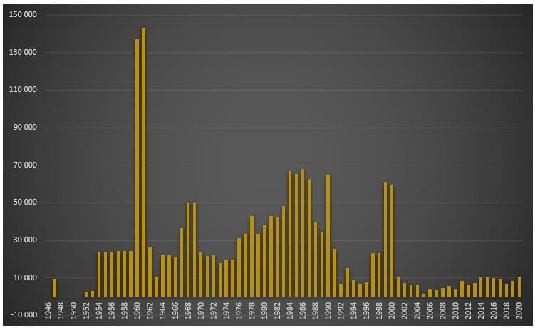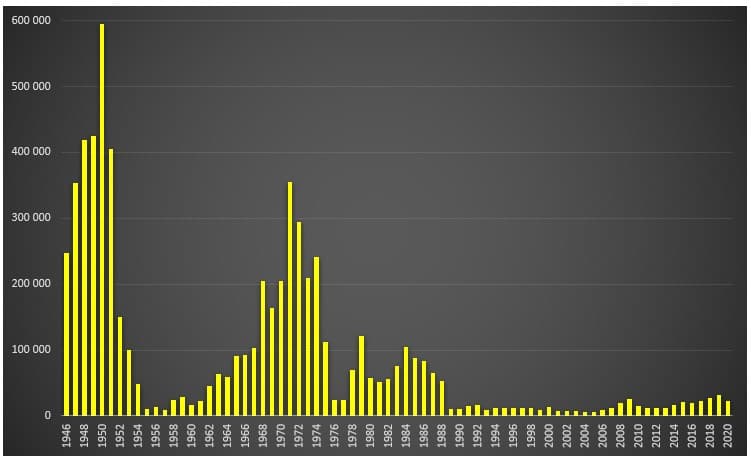 Enfim, certo sim é que, desde 1946 até 2020, segundo dados compilados pelo Our World in Data e validados pelas Nações Unidas, foram mortas 10.477.717 pessoas em conflitos armados, mais do que toda a actual população portuguesa, que contou, nos Censos do ano passado, 10.344.802 vidas.