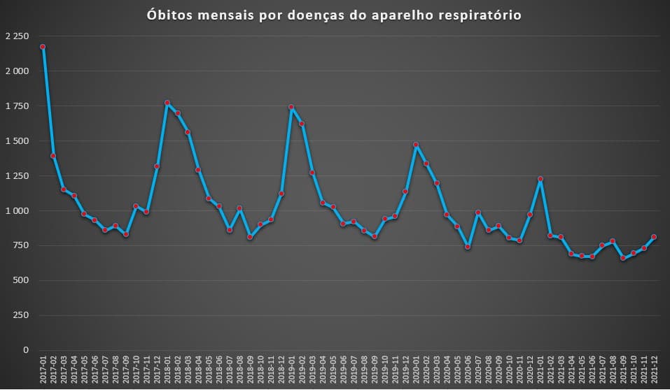 Ou seja, literalmente, a covid-19 “sufocou” uma importante parte das doenças respiratórias.