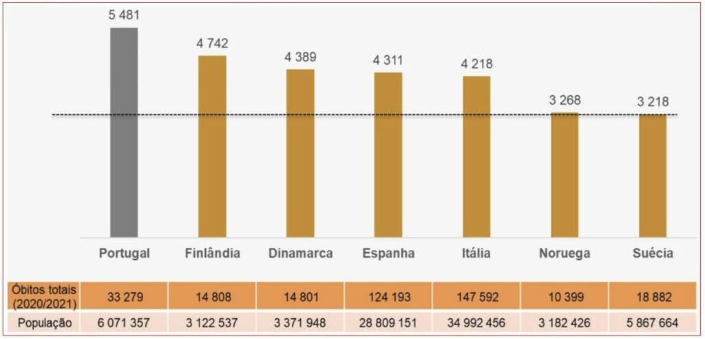 Note-se isso no confronto da mortalidade total – porque, surpresa talvez para os defensores das “medidas tidas por necessárias”, morre-se de muitas outras doenças – entre diversos países latinos e escandinavos durante os anos de 2020 e 2021. Por exemplo, no país que implementou as “medidas tidas por necessárias” – leia-se, Portugal – teve na faixa etária entre os 20 e 65 anos um rácio de mortalidade 70% superior à de certo país que não quis, malvado, implementar as “medidas tidas por necessárias” – leia-se, Suécia.