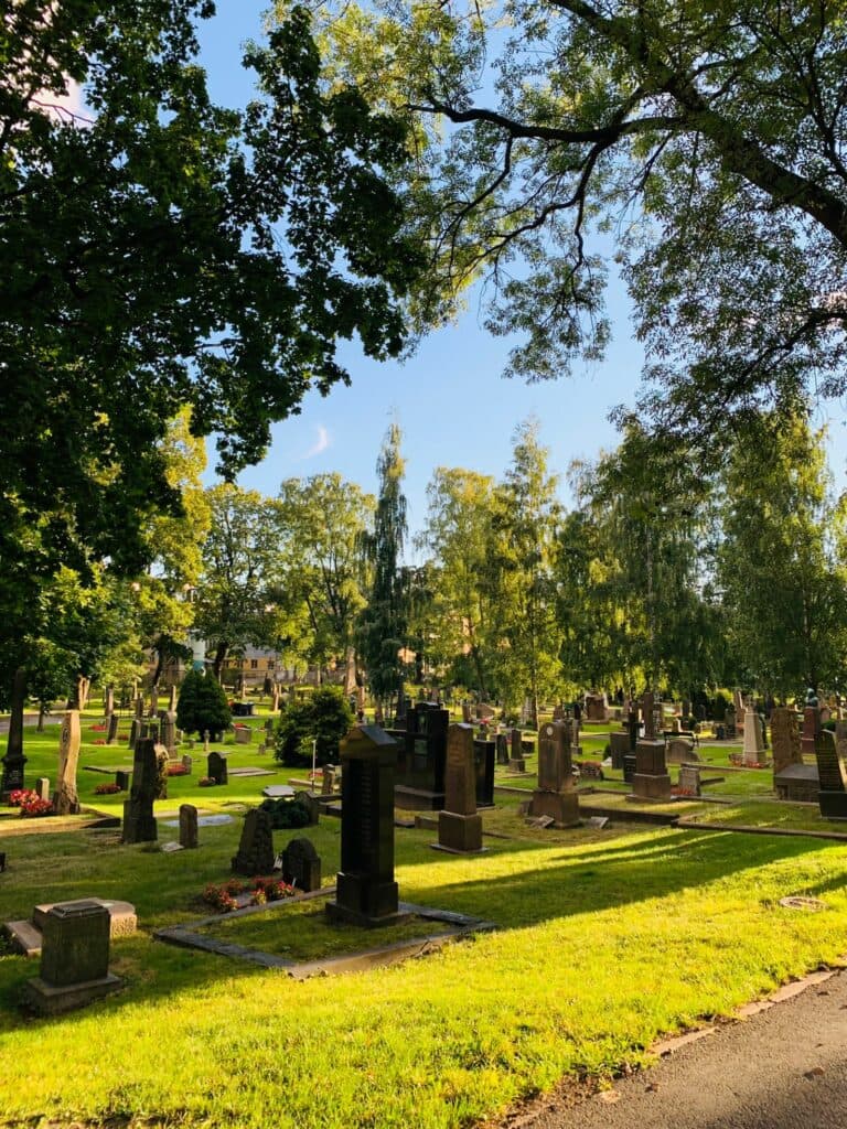 Cheguei à minha paragem e segui em direção a Damstredet, que corresponde às expectativas. Casas coloridas muito bonitas, numa zona tranquila de Oslo, com espaços verdes e um cemitério que entra para o top dos cemitérios mais bonitos que visitei (não estava no programa, mas deixo sempre espaço para o inesperado), depois do cemitério americano na Normandia, que considero ser o mais bonito.