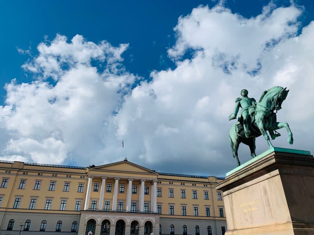 Da fortaleza, seguimos para o Palácio Real, passeamos pelos seus jardins e, no caminho, passámos pelo Grand Hotel de Oslo, o Teatro Nacional e o centro histórico.