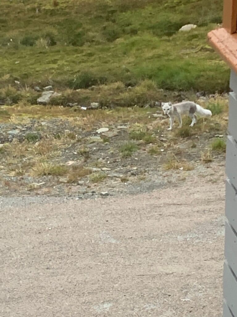 Um hóspede correu até à sala e perguntou: “queres ver uma raposa do Árctico?”. Da janela do seu quarto avistava-se o animal, que já tinha mudado o pelo para o Inverno. Descia a montanha curioso.