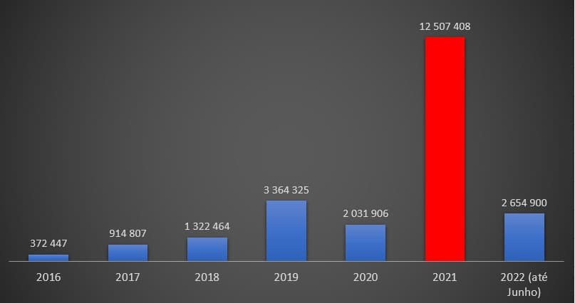 Entretanto, o ano de 2022 está com valores de publicidade do Estado mais modestos do que os de 2021, mas mesmo assim deverá também superar largamente os montantes no período pré-pandemia. Nos primeiros seis meses, o Estado entregou já 2,6 milhões de euros aos órgãos de comunicação social pela compra de espaço publicitário.