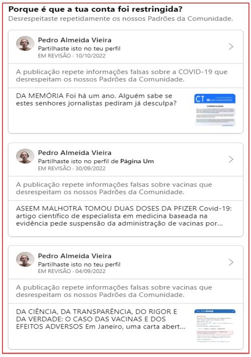 Aliás, o PÁGINA UM noticiou as conclusões do artigo científico e foi alvo de censura no Facebook, que apagou também o post sobre a notícia, num aparente “processo de silenciamento em curso“.