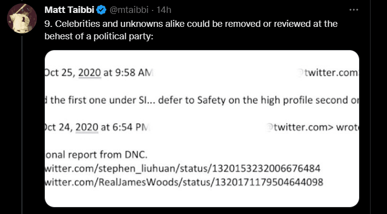 Este sistema não era equilibrado. Era baseado em contactos. Como o Twitter era e é esmagadoramente constituído por pessoas [funcionários] de uma orientação política, havia mais canais, mais formas de reclamar, abertos à esquerda (bem, democratas) do que à direita [Link].