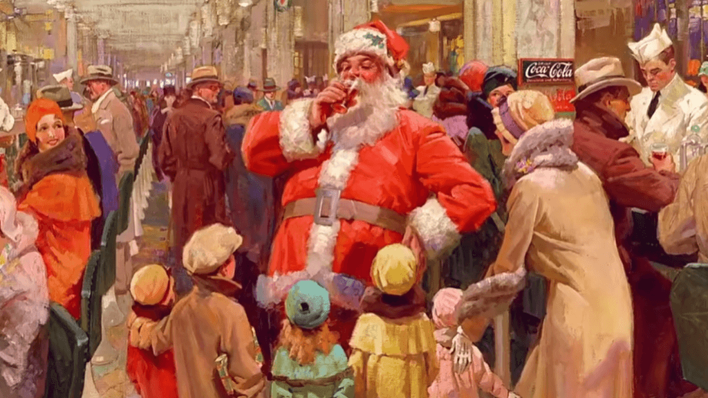 Daí até se encontrar uma figura para o mais famoso e aguardado velhinho foi um pulo. Na segunda metade do século XIX, vários cartoonistas criariam uma iconografia, sempre em evolução: primeiro a preto e branco, mais tarde, já na terceira década do século XX – através de uma campanha de marketing da Coca Cola – com as suas inconfundíveis roupas vermelhas e brancas. ↓
