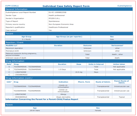 Se uma morte súbita ainda se reveste de uma aura de mistério – em todo o caso, sendo a notificação sido feita pela própria farmacêutica –, certo será que a descrição das mortes de recém-nascidos (e fetos) “descobertas” pelo PÁGINA UM numa pesquisa detalhada à complexa base de dados da Eudravigilance mostram um cenário preocupante. ↓