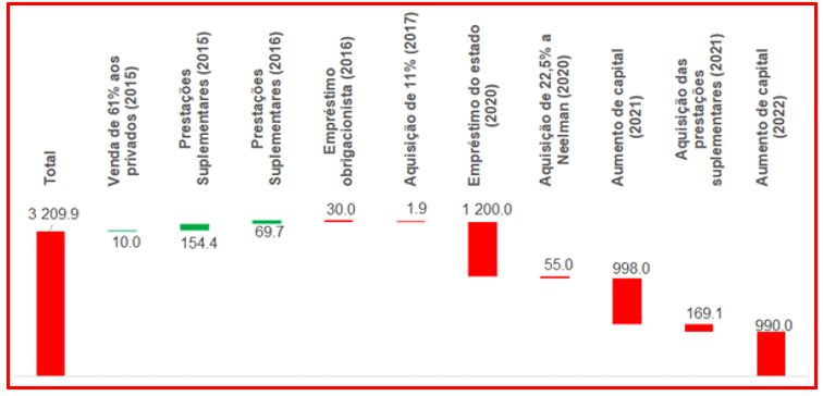 Em 2022, a TAP voltou a ter nova injecção de capital do Estado, desta vez de 980 milhões de euros.