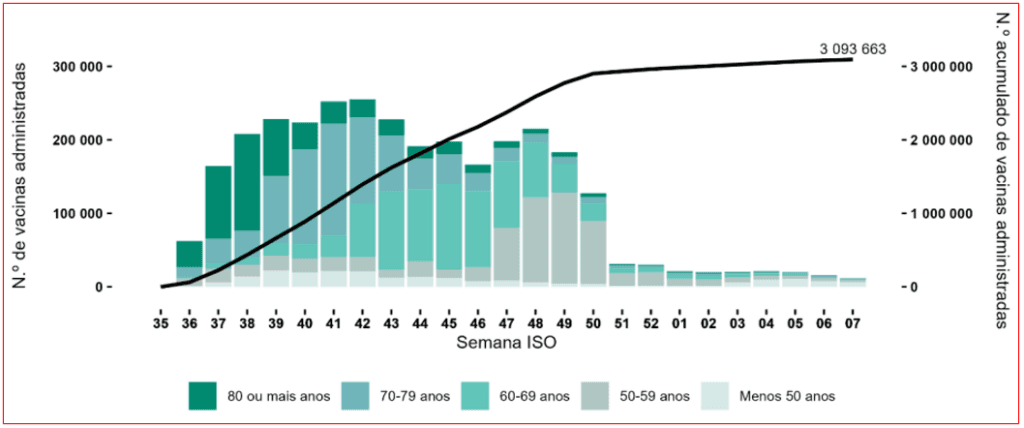 Porém, depois de dois anos de comunicação intensiva sobre os alegados benefícios dos reforços (boosters), a DGS passou a ter uma posição ambígua para a população saudável com menos de 50 anos: não recomenda nem desaconselha. E mais: nem revela – em “cooperação” com o Infarmed – os efeitos adversos dos reforços. O resultado desta situação tem sido desinteresse quase absoluto no reforço vacinal. ↓