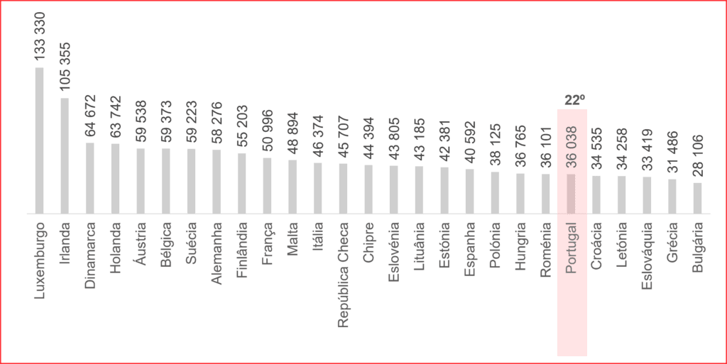 Podíamos pensar, como não convergimos com os países mais ricos, será que estamos a melhorar na ordenação no caso do indicador PIB per capita (corrigido pelo PPC) na União Europeia? Será que este inexorável assalto ao nosso bolso, cada vez maior, diga-se, levou-nos a algum lado? Este regime socialista está a conduzir-nos a algum lado?