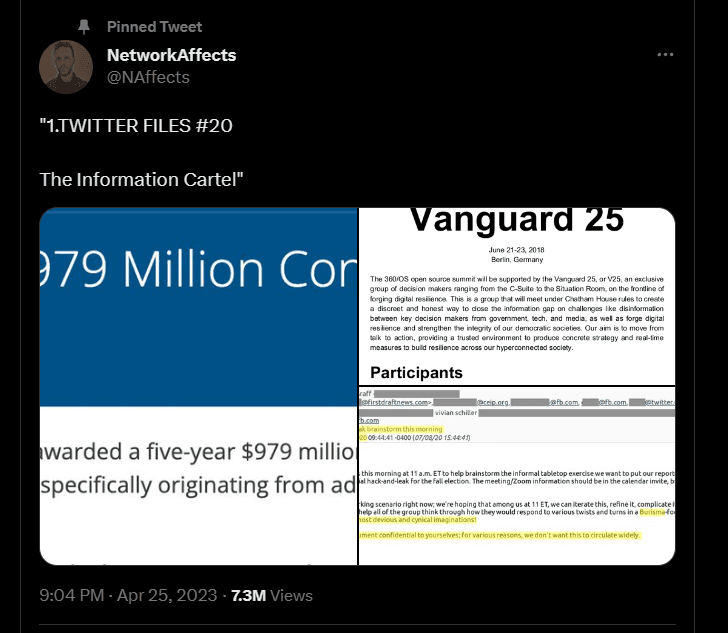 Sim, muito dinheiro. Dinheiro que vem de associações filantrópicas privadas, de entidades governamentais… Nalguns casos, há fortes ligações a serviços de informação e às Forças Armadas, algo que ficou claro com os ‘Twitter Files’, que não é uma teoria da conspiração que as pessoas imaginam, acontece mesmo na realidade. Então, sim, em certos casos, há contractos como aquele que foi feito com a Peraton, na ordem dos mil milhões de dólares. Muitos dos grupos que vimos são mais de dimensão pequena a média – bem, e grande também – como académicos e think-tanks, mas os seus orçamentos variam entre 3, 4 ou 5 milhões e 40, 50 milhões de dólares. O Instituto Aspen em particular coloca muito dinheiro neste tipo de “trabalho”, dezenas de milhões de dólares. Portanto, sim, é mesmo um projecto com um financiamento massivo, tudo sob o pretexto da “desinformação”. E a desinformação existe, mas a ameaça que representa foi exagerada essencialmente para servir de justificação para a censura.
