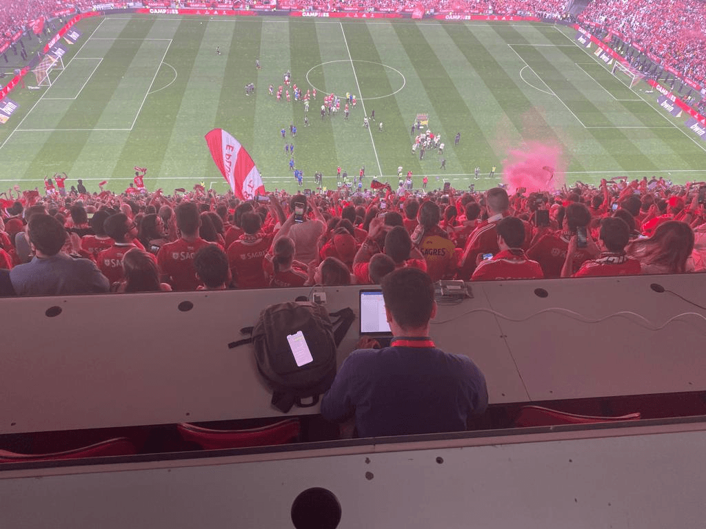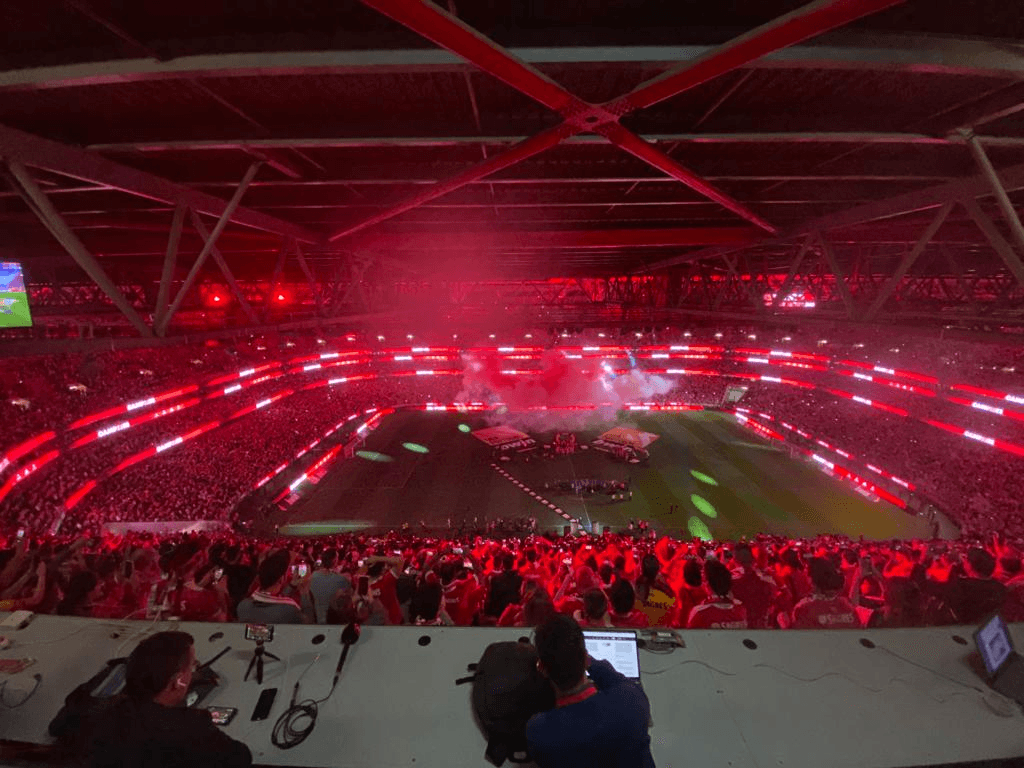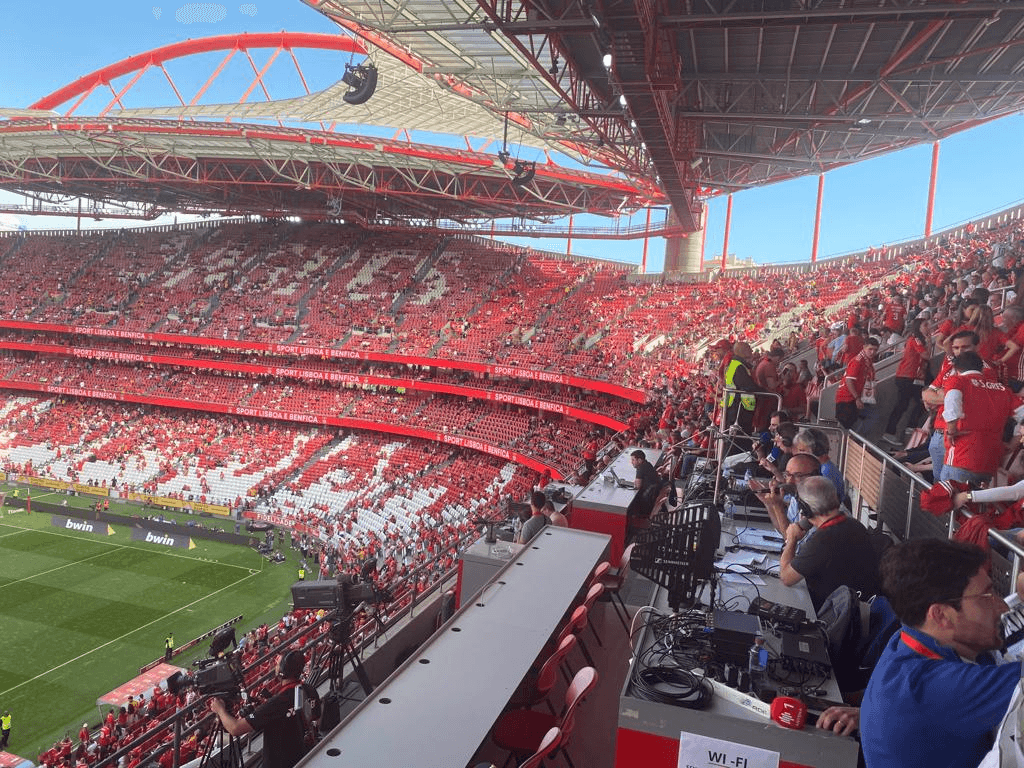 Enfim, primeira vantagem de se ser jornalista desportivo: não tive de ir apanhar filas nem acordar pela manhã da terça-feira da passada semana para tentar, como sócio, comprar um bilhete no site do clube. Para felicidade, tive a ideia de escrever uma crónica em pleno Estádio da Luz, solicitando acreditação, fazendo assim “passar” por jornalista desportivo – sonho de criança apanhado quando, pela rádio, ouvia os relatos de Artur Agostinho e Ribeiro Cristóvão, para assim imaginar como teriam sido os golos antes de ver, muito mais tarde, os resumos na televisão sob a batuta do Mário Zambujal. ↓