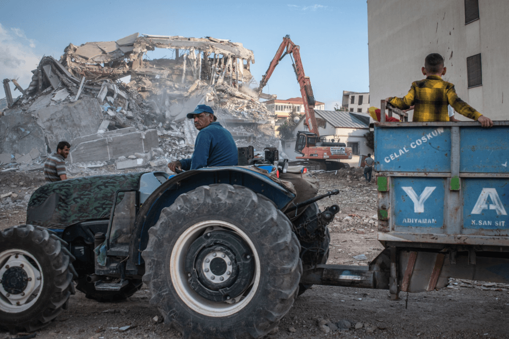 “Já não me atrevo a entrar numa casa. Qualquer casa. Assim que tento, entro em pânico. Não consigo evitar. Começo a pensar que o chão pode tremer novamente. Acho que tem muito a ver com as constantes réplicas. Há também muitos saques e destruição em toda a cidade. Pelo menos aqui, nas tendas, estamos seguros. E o mais importante, estamos juntos«. Maryem Kalkan conclui assim a nossa conversa, enquanto o ar em frente à sua tenda se enchia com o cheiro de pão recém-cozido.
