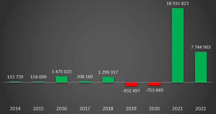 Com efeito, analisando as demonstrações de resultados, o lucro bruto (antes de descontados juros, impostos e amortizações), diminuiu 11 milhões de euros em 2021 para 14 milhões de euros em 2022. As receitas totais desceram 18% para 101 milhões de euros. Note-se que em 2021, as receitas tinham aumentado 41% para 123,5 milhões de euros com o aumento de actividade devido à pandemia.