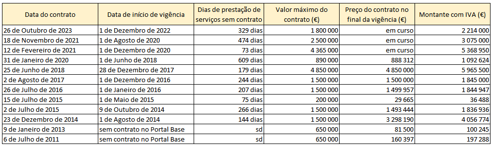 Com o contrato de 2018, no valor de 5,97 milhões de euros, subiu-se a parada, até porque se foram acumulando contratos em vigor. Por exemplo, quando foi assinado o contrato de 2018, ainda não tinham sido integralmente executados os contratos de 2016 e 2017, uma vez que estes abrangiam três anos.