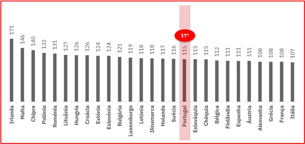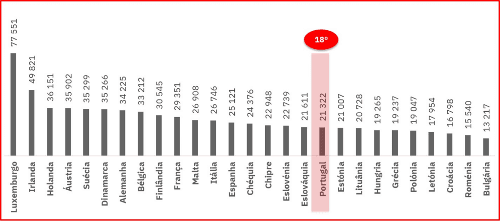 Qual foi o resultado do governo liderado pelo homem que tem recebido inúmeros panegíricos pelos órgãos de propaganda, com muitos a porem as mãos na fogueira pela sua honestidade? Estamos agora na vigésima posição no conjunto dos 27 países da União Europeia, voltando a perder duas posições entre 2015 e 2022. Atenção, para a posição do carro vassoura já não falta muito. A Roménia e a Hungria estão à porta.