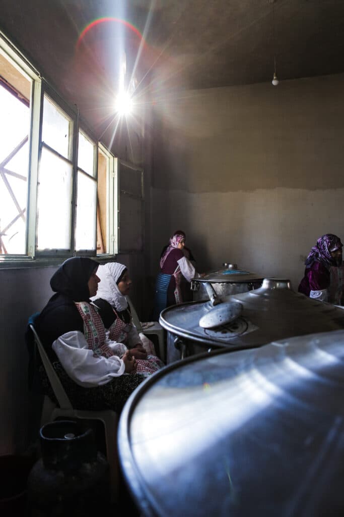 Em seis horas aviam com 12 panelas enormes 25.000 refeições previstas para os deslocados de Alepo dispersos por 16 vilas da região. Indago qual é a ementa: arroz, carne (dizem-me que sim…), e ervilhas. Há ainda salada de tomate com couve.