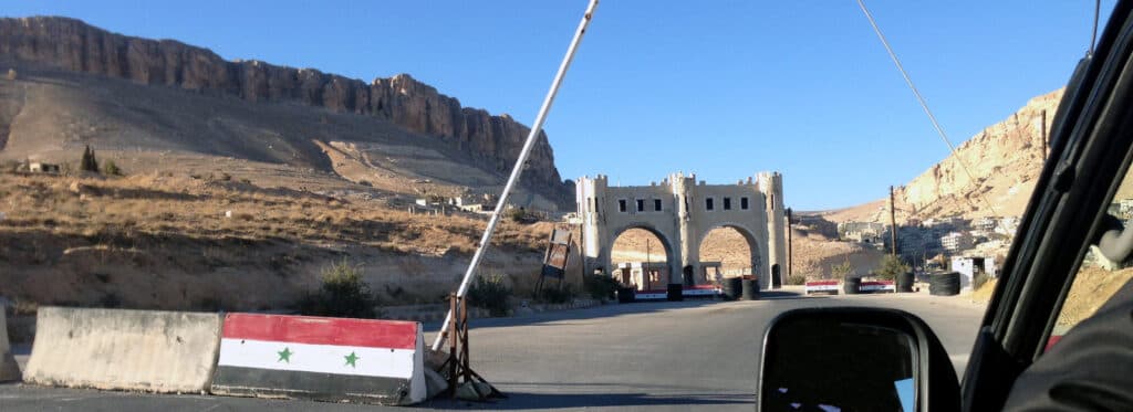 Depois da refeição, partimos com destino à aldeia de Qarah. Hora e meia de caminho pela estrada de Homs e de Alepo. Passamos por vários check points controlados por militares. No de Qarah, somos travados! Turistas acidentais (ou ocidentais, é a mesma coisa) num lugar ermo (a linha da Frente não está longe!) fora de horas é no mínimo estranho… É.