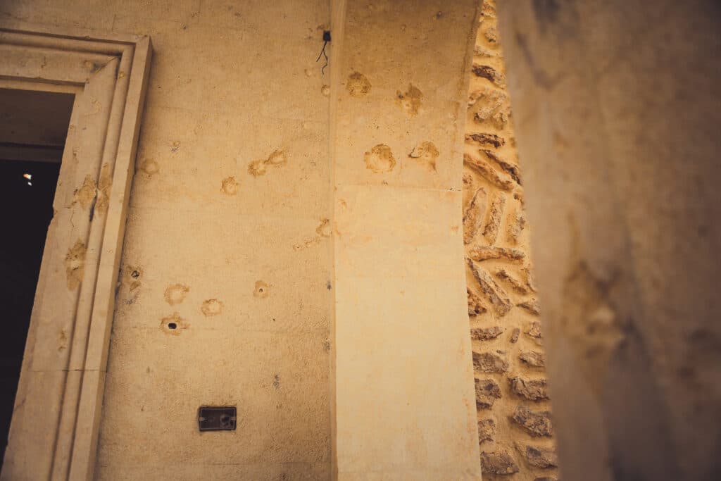 — Despertámos às 6 e meia da manhã com os rebentamentos e os gritos Takbir e Allahu Akbar. Desataram aos tiros aqui dentro. Fui para ali. Uma bala bateu na parede, bateu-me na cruz e entrou aqui. Pressionei o peito com a mão e meti-me debaixo deste armário. Pedi à Virgem para não me abandonar…