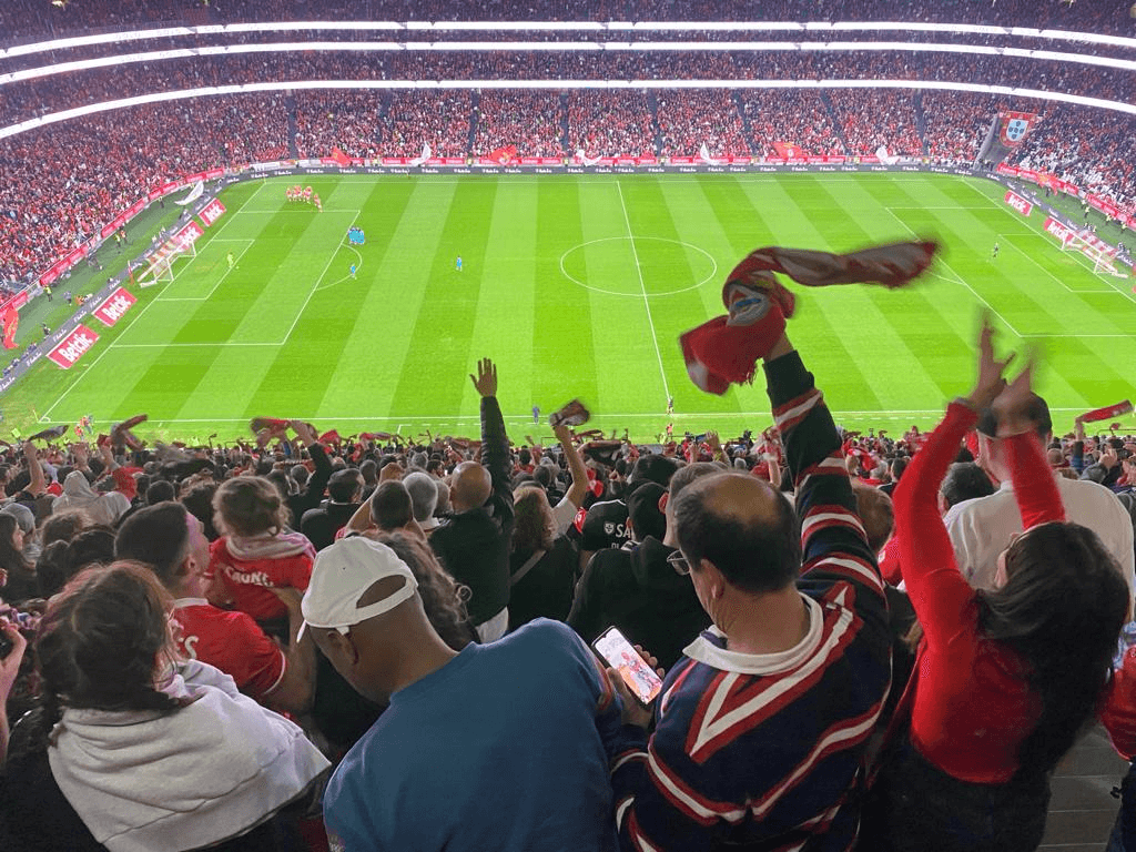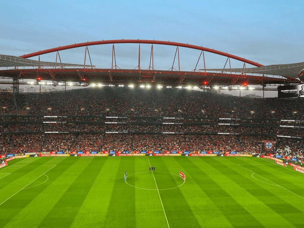 E cá estou a tempo ainda de recepcionar o farnel do Benfica (embora hoje esteja um bocado cheio, por causa de um almoço tardio), e de subir as cada vez mais íngremes escadas para esta Varanda da Luz antes do apito inicial, por via de um tempo extra por se fazer um minuto de silêncio não sei pela alma de quem… vou daqui a nada ver… ↓