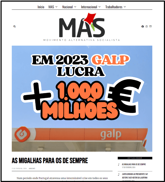 Caminhamos para uma parte decisiva da entrevista que é uma das razões da existência do MAS ou do Agora – do MAS Agora, gostei dessa expressão…Achamos que é indispensável criar uma esquerda alternativa à atual esquerda parlamentar. Porque a actual esquerda parlamentar não apresentou soluções. Se tivesse apresentado soluções, porque é que surgia a extrema-direita? A extrema-direita surgiu quando houve uma geringonça. Sei que há muita gente da esquerda que continua a desejar uma geringonça, porque perante o perigo de um governo de extrema-direita, as pessoas dizem: a geringonça, outra vez. Compreendo isso, obviamente. Não estou de acordo em sustentar um governo PS e dar-lhe o livre curso, como aconteceu, mas um governo de extrema-direita é das das piores coisas que podem acontecer. Mas não podemos estar nessa dicotomia: ou governo de extrema-direita ou um governo dirigido pelo PS. A outra esquerda nunca lutou para construção de uma verdadeira alternativa que transformasse o PS num apêndice dessa esquerda alternativa. Agora, é o PS que cria essa esquerda como apêndice. O PCP e o Bloco foram apêndice do governo PS, viabilizaram os Orçamentos de Estado como uns rebuçados que António Costa distribuiu. A que isto deu origem? Deu origem a que o surgisse alguém da extrema-direita [a dizer]: “isto é o socialismo de esquerda; a esquerda governa o país há 30 anos, estão todos juntos; é o PS, é tudo igual”. E não é só aqui. Quem governou na Europa? Este centro político! Por isso, nas eleições, os votos na extrema-direita começaram a ganhar peso. Os votos da extrema-direita não é são só de gente da direita. Nem pensar nisso. O Chega teve votos no Alentejo, na base eleitoral do Partido Comunista, de certeza absoluta, e do PS. Como aconteceu em França, em Marselha. O Partido Comunista Francês era uma coisa gigantesca, passou para a Le Pen a uma velocidade supersónica. É esse o problema. O problema é que a governação da esquerda tradicional, dirigida pelo PS, em que todos os outros, capitularam, o Bloco, o próprio Partido Comunista. É claro que a direita diz que eles são todos radicais. Mas quais radicais, se eles ajudaram o PS a governar o país durante anos, com uma política para os privados, na Saúde, com o salários baixos, com as rendas caras. O Bloco e o PCP ajudaram o Governo a manter-se!