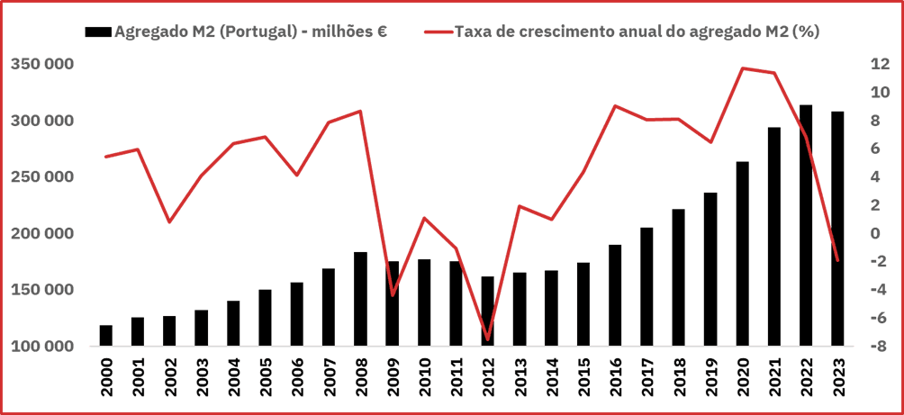 Ninguém teve a coragem de explicar as razões da inflação que presentemente vivemos: o brutal incremento de Euros em circulação, em particular em 2020 e 2021, onde as taxas de crescimento anual foram de 12% e 11% respectivamente, os anos da putativa pandemia. Não foi a guerra na Ucrânia, nem os choques externos, mas as rotativas do BCE e dos bancos os verdadeiros causadores desta inflação que vivemos e que permitiu ao Estado português equilibrar o orçamento em 2023, pois as receitas de IVA e dos demais impostos directos dispararam com o este assalto silencioso chamado inflação. Alguém denunciou isto?