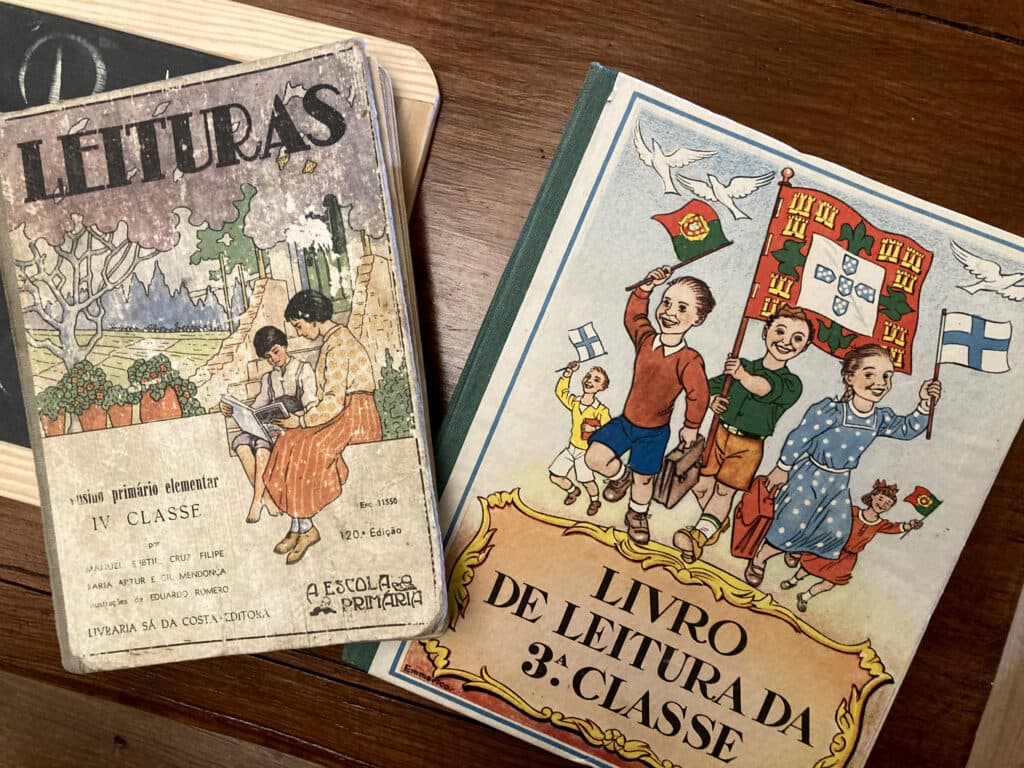 — A primeira do livro da 4ª classe: «Olha, lá vai o Gonçalo.» Quer mais? (Desata a rir)