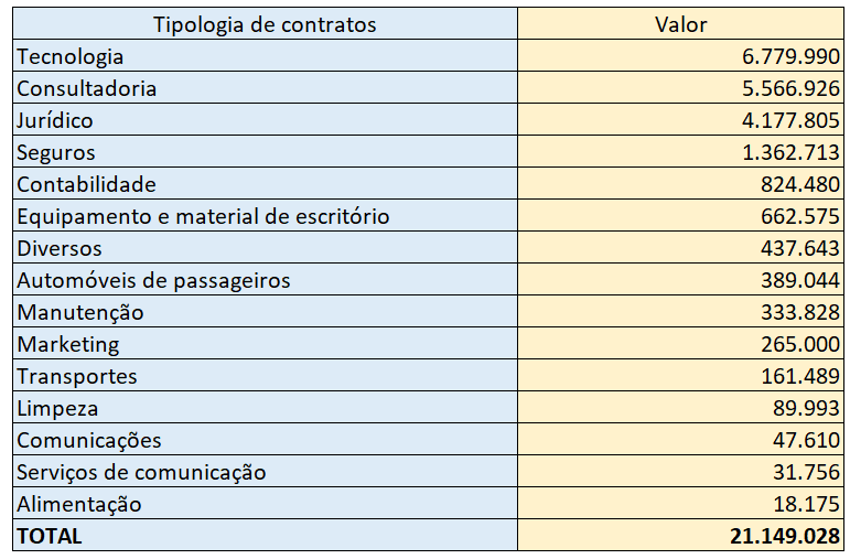 Num agrupamento por tipologia feita pelo PÁGINA UM, de um total de 21,15 milhões de euros, os maiores gastos foram para equipamentos e serviços associados a tecnologia de informação, com cerca de 6,8 milhões de euros (32% do total), destacando-se os ganhos da Glintt (1,4 milhões de euros), a Hydra IT (quase 1,2 milhões de euros), a IDW (650 mil euros), a TCSI (418 mil euros) e a Divultec (358 mil euros).