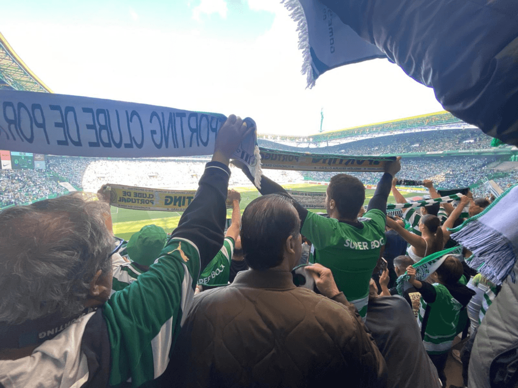 Antes do jogo começar, ao meu lado na bancada central, o telemóvel mais frenético do estádio é o do senhor director do PÁGINA UM. Ele aponta para todo o lado, compondo vídeos e fotografias aos ziguezagues, imolando as fintas rápidas e súbitas paragens do Trincão. Ao ver Pedro Almeida Vieira neste torpor místico e alucinado, compreendo como se sentiram Eduardo Gageiro, na manhã do 25 de Abril, e o astronauta Neil Armstrong de câmara na mão e pés na lua. ↓