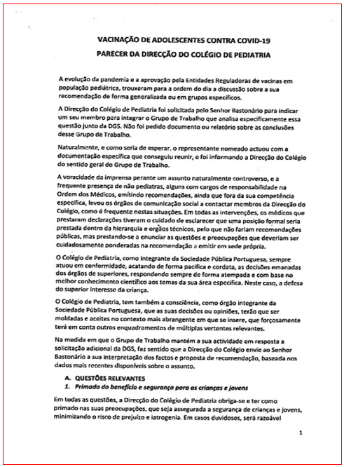 Ou seja, nunca houve consenso para a vacinação de adolescentes e crianças, a começar pela classe médica e, em particular, por parte da cúpula da Pediatria. E não foi apenas nos pareceres do Colégio da Pediatria, mas também num abaixo-assinado de profissionais de saúde, no início de 2022, que foi ostracizado pela generalidade da imprensa mainstream.