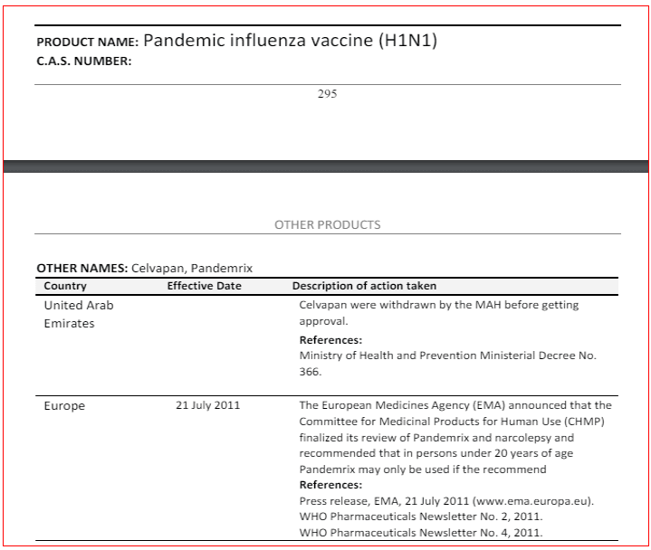 Aliás, somente no caso de vacinas, existem diversos casos mais ou menos recentes de retirada total ou parcial na Europa e/ ou em outras partes do Mundo por razões de segurança. Exemplos são conhecidos, e reportados tantos nos media como em artigos científicos, como os da vacina Pandemrix fabricada pela GlaxoSmithKline durante a pandemia de gripe suína de 2009-2010 (FICHEIRO 13), a da vacina LYMERrix, fabricada contra a doença de Lyme pela actual GSK (FICHEIRO 14). E podia continuar com mais, mas talvez seja mais interessante remeter a ERC para o relatório de 2020 da Organização Mundial da Saúde relativo ao período 2010-2018 intitulado “Restrictions in use and availability of pharmaceuticals”, onde surgem referidas nove vacinas (FICHEIRO 15).
