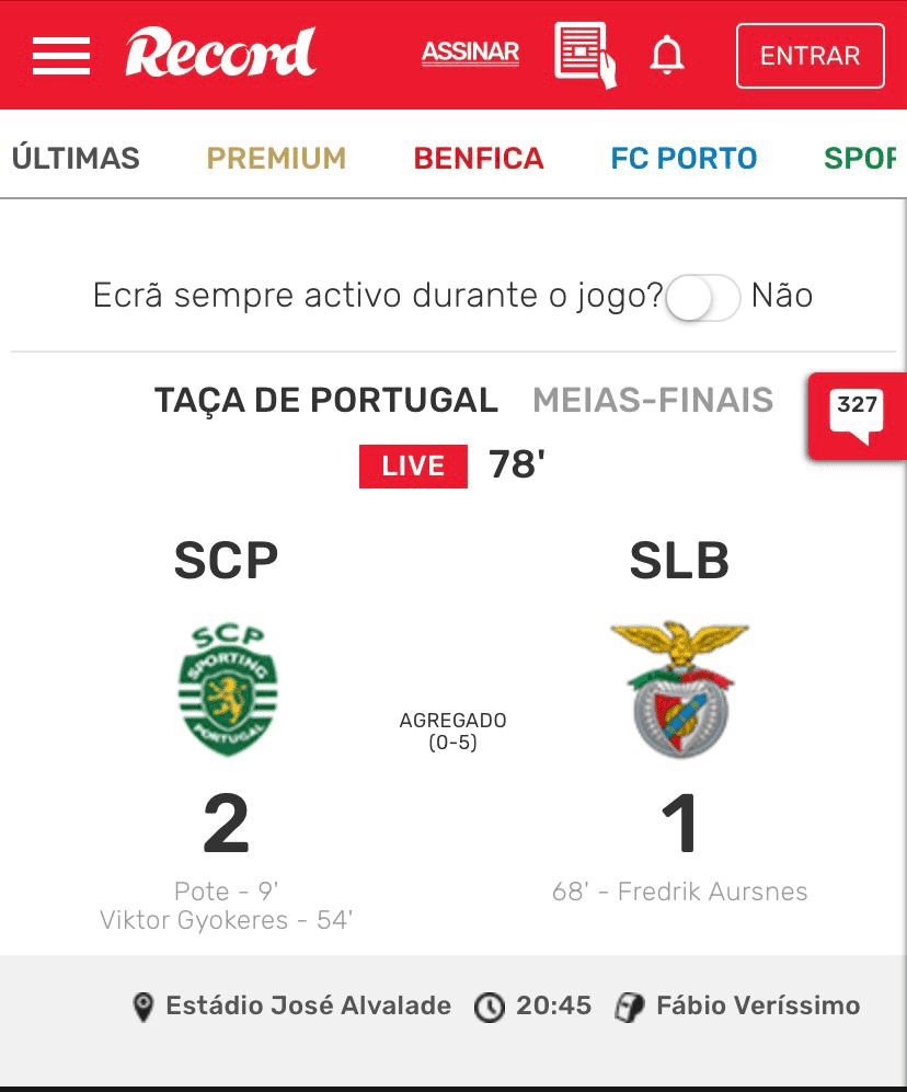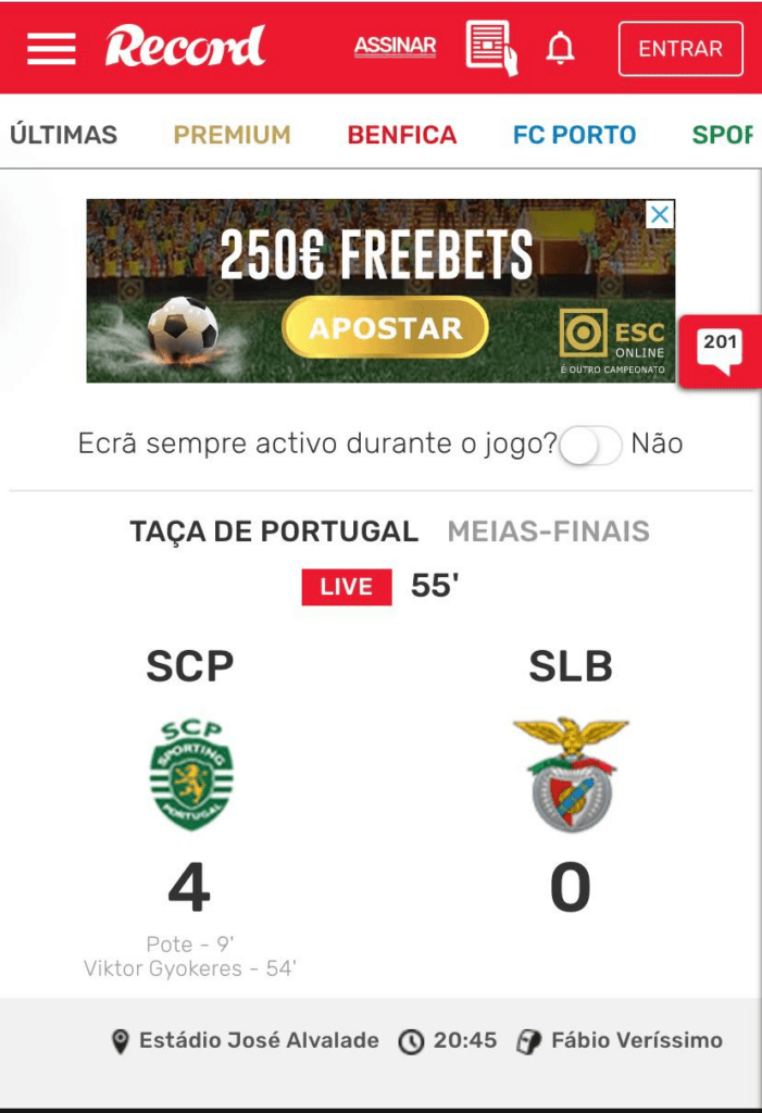 Foi jogo emocionante, o de ontem, no Estádio de Alvalade, onde se defrontou o Sporting e o Benfica, mas mais interessante, por certo, teria sido assistir à cobertura realizada pelos repórteres do jornal Record, que agora têm o Cristiano Ronaldo como o ‘patrão’ principal, com 30% da Medialivre.