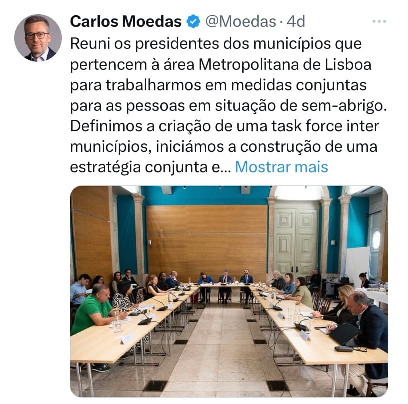 Mas calma. Nem sempre o Grande – o Grande Líder Moedas – lidera com as pessoas. Tem de se ter estatuto para se estar COM o Líder. Até em reuniões que, na verdade, servirão para ele – leia-se, Ele – expor a sua liderança. Por exemplo, Moedas reúne COM o presidente da Câmara Municipal do Porto, mas já reúne OS presidentes das autarquias que integram a Área Metropolitana de Lisboa. Mesmo quando se está na mesma sala do Grande não significa que se esteja ao mesmo nível – que assim conste in saecula saeculorum.