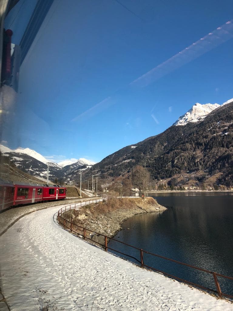 Viajar de comboio é algo que se entranha, são viagens que não esquecemos, que prolongam as memórias, e esta, em particular, é quase mágica. Passámos por aldeias alpinas pintadas de branco, que contrastavam com um intenso azul do céu e as escuras colinas mais escarpadas. Garantidamente, uma das viagens de comboio mais deslumbrantes que se podem fazer.