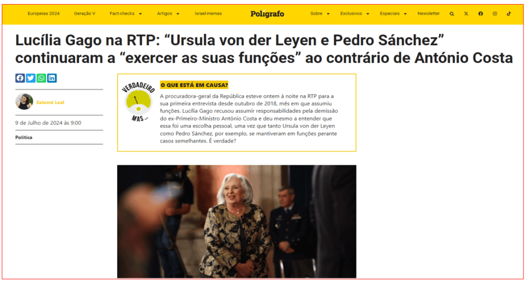 Portanto, assentando nisto, lá tivemos o Polígrafo com a jornalista Salomé Leal a pôr a Dona Lucília Gago em ordem, dando-lhe um raspanete, porque, segundo esta veneranda (nada veterana) fact checker, não é comparável a situação de Ursula von der Leyen com a de António Costa, porque, havendo um caso de alegada “interferência em funções públicas, destruição de SMS, corrupção e conflito de interesses” nas negociações de vacinas entre a presidente da Comissão Europeia e o CEO da Pfizer, a senhora alemã “não ponderou em momento algum abandonar o cargo apesar da investigação, mas também não foi, ainda, acusada da prática de qualquer crime”.