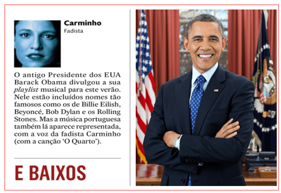 Barack Obama, apesar do seu estatuto de reformado, é homem ocupado, como todos saberão. Apesar de as horas de um dia lhe passarem como aos demais, os seus minutos são escassos: daí que ouvir Carminho a despachar o fado ‘O Quarto’ em 1 minuto e 16 segundos no filme ‘Pobres criaturas’ lhe pareceu bastante para a integrar na sua playlist estival no Spotify, em vez de sugerir a versão integral de 3 minutos e 20 segundos.