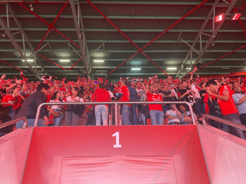No Benfica aplica-se a máxima: “quem se se levanta primeiro, calça os chinelos”, de sorte que, enfim, remetido fui hoje, por via da acrescida procura, para a ala esquerda, já algo de esguelha, da Varanda da Luz, que aparentemente é para onde ‘exilam’ os jornalistas estrangeiros – digo eu, pois, aqui ao derredor, vejo ‘olheiros’ da polaca Telewizia Polska, da alemã Sportbild Hamburg e da norte-americana ESPN.