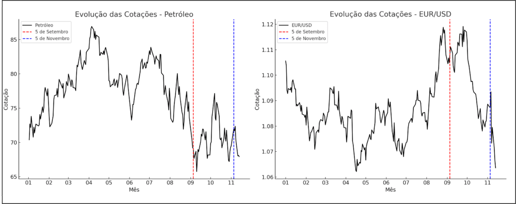 Quanto ao euro, cotava a 1,09 dólares no dia das eleições e no dia 13 de Novembro valia 1,07 dólares.