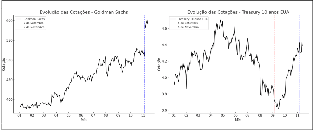 De resto, os dados mostram que nos mercados de capitais já se contava com a vitória do candidato do Partido Republicano nestas eleições para a presidência dos Estados Unidos. “Havia uma cegueira, um certo negacionismo nos media tradicionais, de que Trump iria ganhar, mas os mercados já estavam a descontar que o cenário central seria o de uma vitória dos republicanos”, disse Filipe Garcia, economista da IMF-Informação de Mercados Financeiros. “Os mercados só não previam que a vitória dos republicanos fosse tão vasta, por isso é que ainda reagiram”, adiantou em declarações em PÁGINA UM. ↓