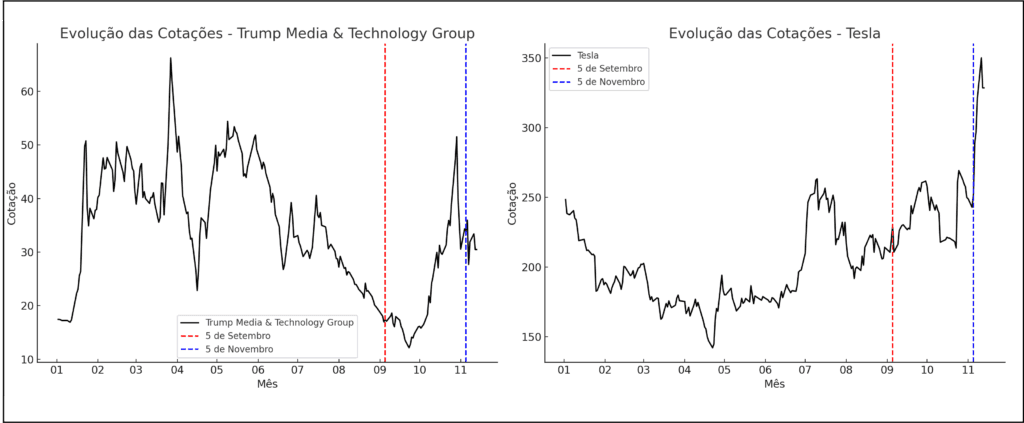 Ao contrário do esperado, as acções da Trump Media registaram uma queda de 15%, pois no dia 5 de Novembro cotavam a 33,94 dólares por acção e no dia 13 de Novembro a 28,93 dólares.
