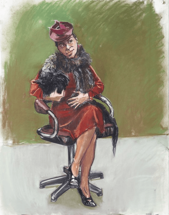 Esta pintura, criada em 2003, a última da série que reinterpreta o conto clássico do Capuchinho Vermelho, mostra uma mulher sentada, vestida de veludo vermelho e adornada com uma estola de pele, remetendo para temas como o poder matriarcal e a transformação, mas mantendo, ao mesmo tempo, uma tensão narrativa que é marca distintiva desta artista falecida em Junho de 2022, aos 87 anos.