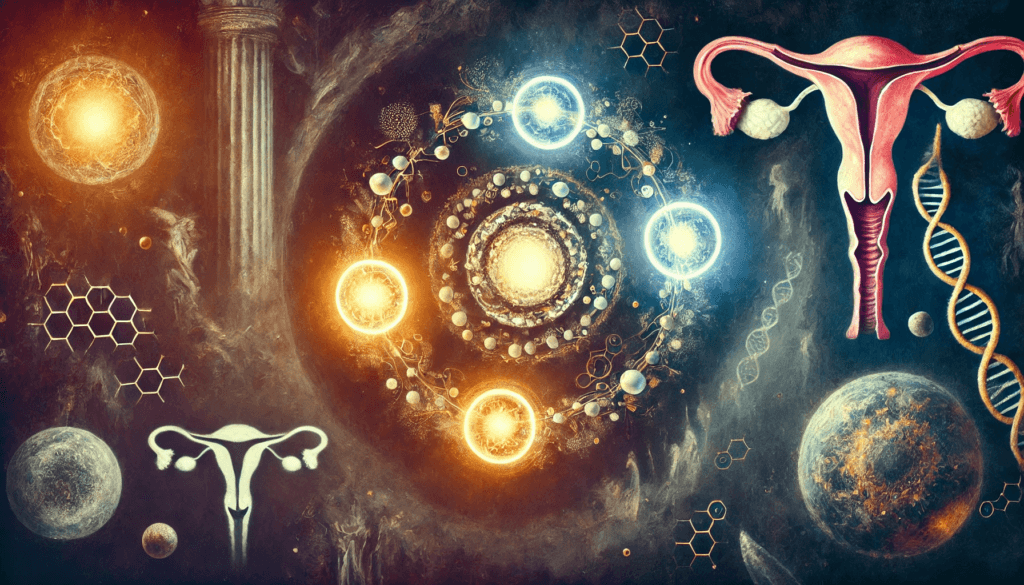 Na vida real, a aventura embrionária é uma montanha-russa de um mês, regulada por três tipos de hormonas diferentes: as gonadotrofinas, que vêm do cérebro, e fazem o ovário amadurecer um dos seus ovos; os estrogénios, que vêm do ovário, e regulam a ligação desse ovo com o espermatozoide mais capacitado para a tarefa; e, finalmente, a progesterona, que participa activamente na ligação do embrião às paredes do útero. Estas tarefas devem estar todas prontas ao fim de um mês, ou, mais apropriadamente, ao fim do equivalente a um ciclo lunar[1]. Se não estiverem é porque não houve embrião, pelo que não houve fertilização. Assim sendo, ao fim de alguns dias depois deste ciclo, o cérebro envia mais gonadotrofinas para o ovário para que o ciclo comece outra vez.