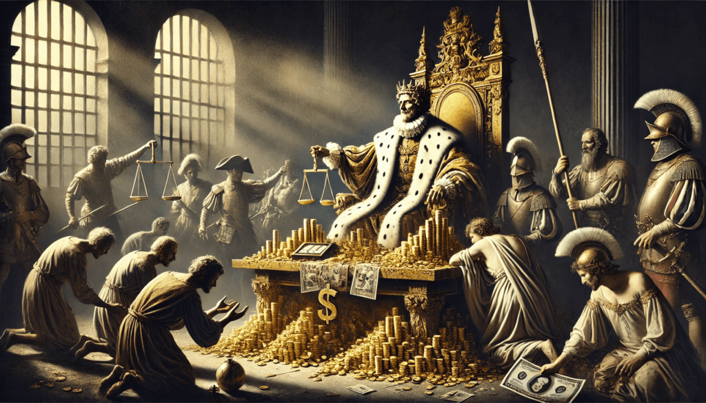 O endividamento público é outro mecanismo de pilhagem. Os chamados representantes do povo, sem qualquer mandato expresso para tal, assinam contratos de dívida que amarram gerações futuras a um fardo impagável. Como essa dívida não pode ser paga com receitas fiscais – pois os impostos já se encontram no seu limite tolerável –, imprime-se moeda, desvalorizando o poder de compra dos cidadãos, roubando-lhes riqueza pela via silenciosa da inflação. Em qualquer outro contexto, isto seria chamado de esquema fraudulento, digno dos mais célebres charlatães. Mas quando praticado por banqueiros centrais, banqueiros do sistema e políticos engravatados, converte-se em política económica responsável.