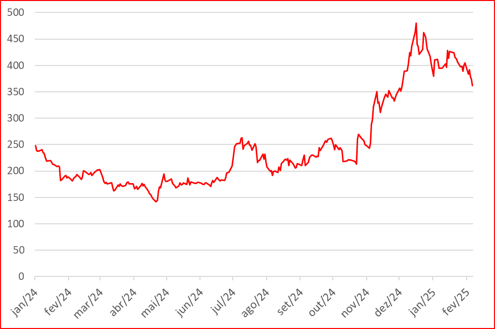 - Máximo: 17 de Dezembro de 2024, com 479,86.